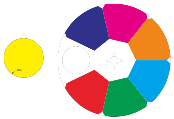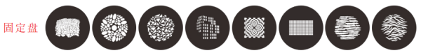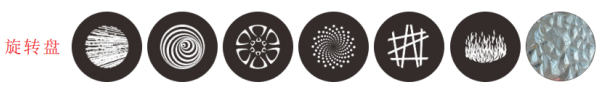 Rotating gobo Wheel: 8 gobos (pluggable), (Inner 16mm, outer 25.4mm, thick 1.0mm)