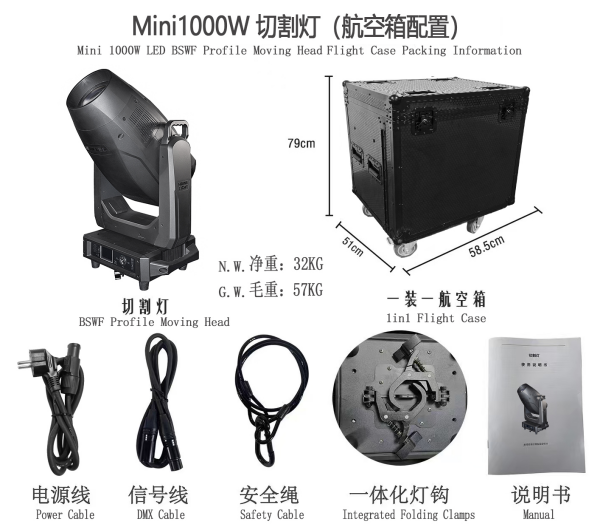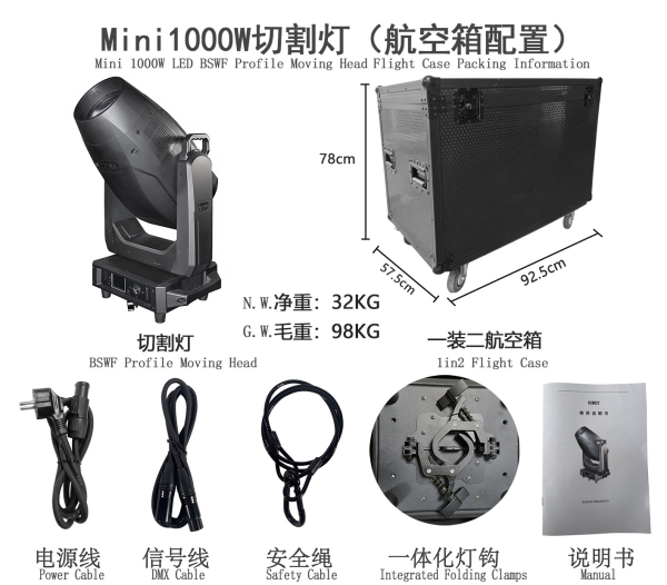 Mini 1000W LED BSWF Moving head profile light LM-1000MINI